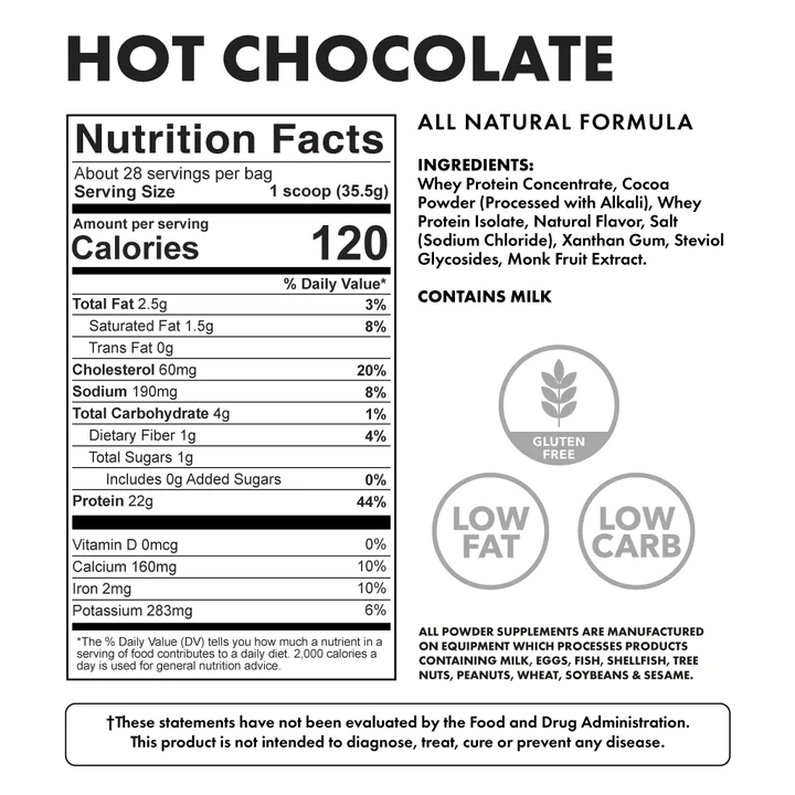 100% whey protein, providing a range of amino acids that help to stimulate your muscle growth. The low-fat, low-carb formula delivers 22 grams of protein per serving to keep you feeling full and satisfied for hours at a time.